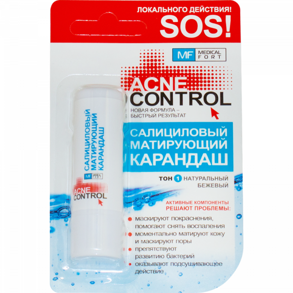 Карандаш салициловый матирующий Acne Control, тон 1, 4.2 г.