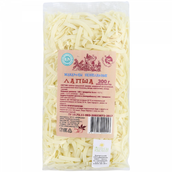 / Макаронные изделия «Чудесница» безбелковые, лапша, 300 г.