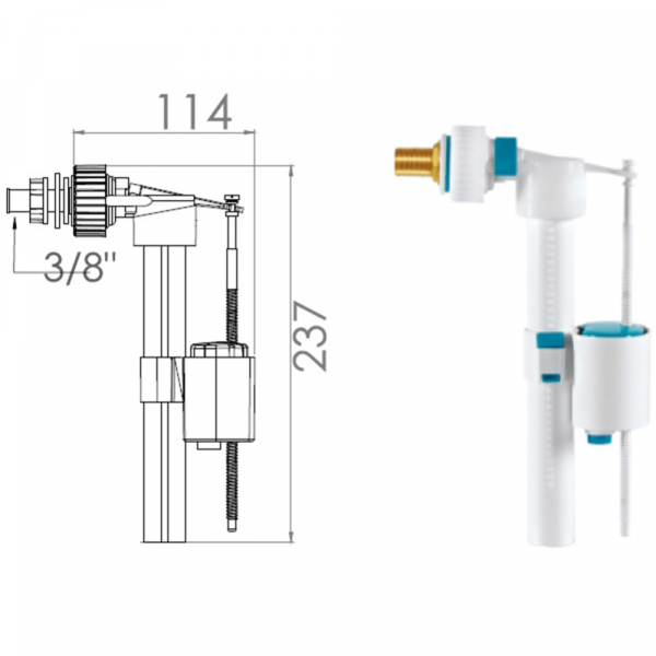 / Поплавочный клапан «Nova» боковой подачи воды, 3/8, латунь.