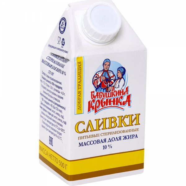 Сливки «Бабушкина крынка»стерилизованные, 10%, 500 мл.