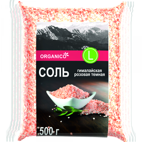 Соль пищевая гималайская «Organico» розовая, помол №1, 500 г.
