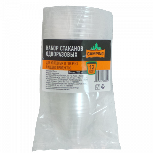 Набор стаканов одноразовых 12 шт, 200 мл.