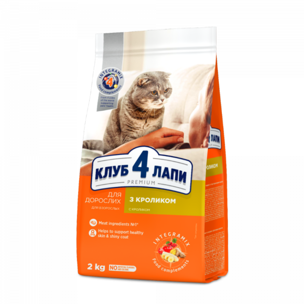 / Сухой корм для взрослых кошек «Club 4 Paws» премиум с кроликом, 2 кг.