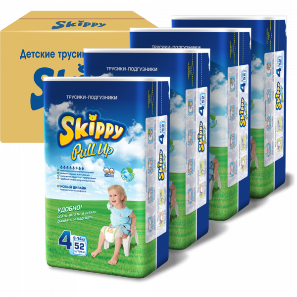 Трусики-подгузники «Skippy» Pull-Up, размер 4, 9-14 кг, 208 шт.