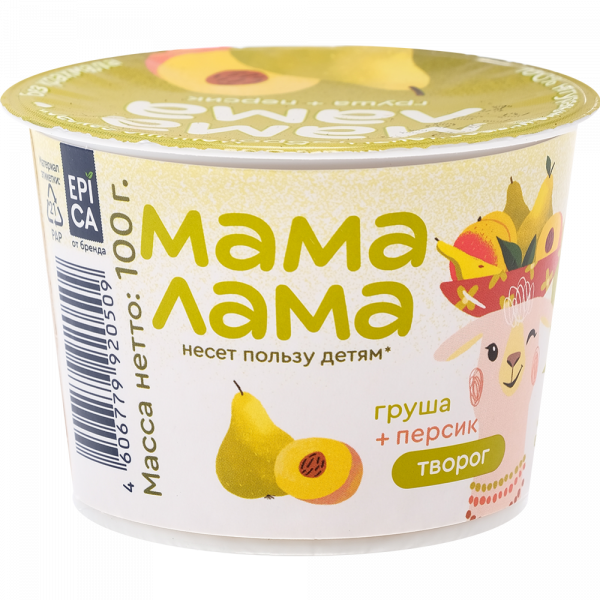 / Творог «Мама Лама» персик и груша, 3.8%, 100 г.