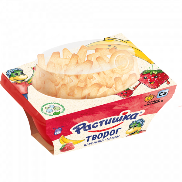 / Творог «Растишка» с клубникой, бананом и печеньем, 108 г.